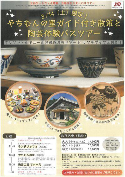 やちむんの里ガイド付散策と陶芸体験バスツアーのご紹介です